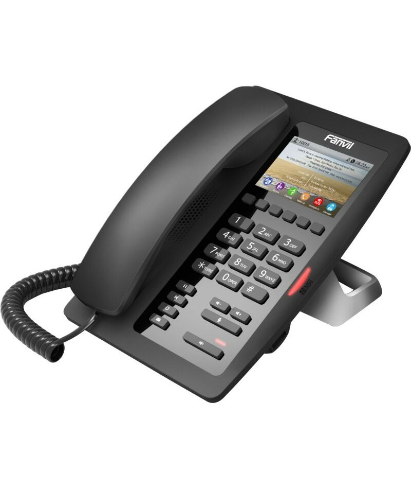 - Fanvil H5 — это высококачественный гостиничный SIP-телефон с простым понятным интерфейсом и поддержкой PoE. Устройство соответствует международным стандартам и обладает полным набором необходимых функций. Старшая модель линейки оснащена 6 программируемыми кнопками и 3,5' LCD-экраном, на который заносятся установленные на каждую из кнопок действия без использования бумажных носителей. Поддержка нескольких языков в таком случае важна для международных отелей. Модель оснащена USB-портом для зарядки мобильных телефонов и других устройств. Все это делает Fanvil H5 идеальным решением для гостиниц высокого класса и для номеров класса Lux в любых отелях.