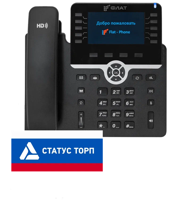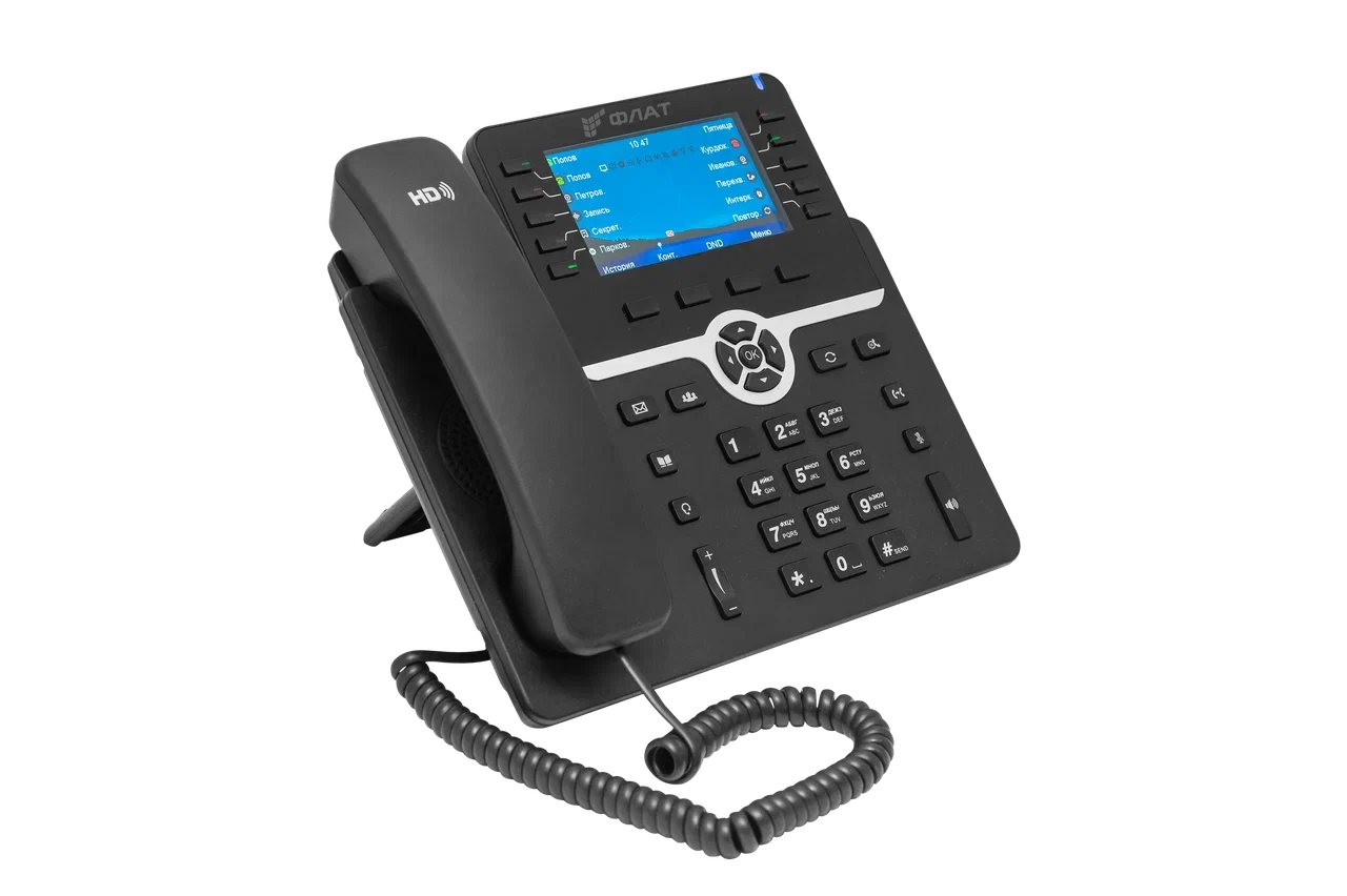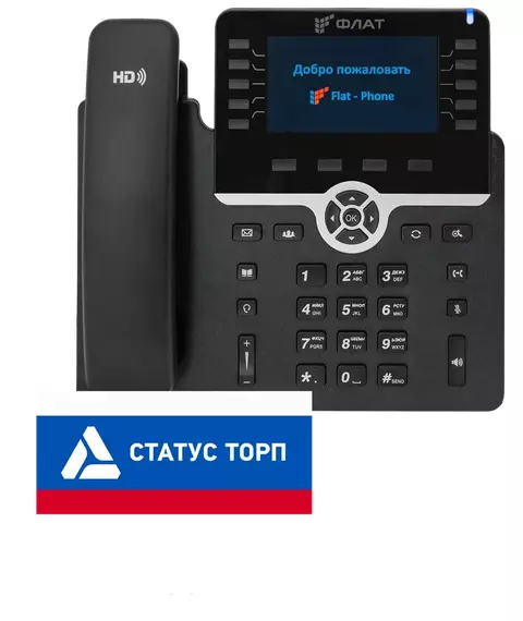 IP-телефон Флат B10 20 SIP-аккаунтов, 2 порта 10/100/1000BASE-T (RJ-45), ЖК-дисплей, PoE, ТОРП [Flat-Phone-B10/RU]
