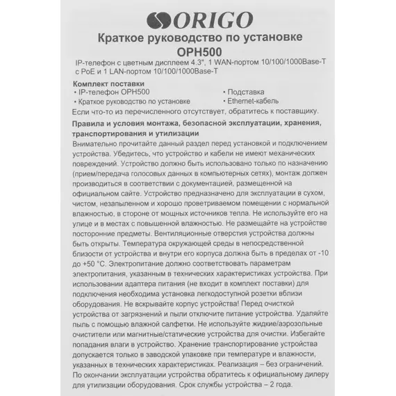 Телефон VOIP ORIGO OPH500 /A1B 1000Base-T WAN PoE, 1000Base-T LAN, color LCD 4.3", без адаптера PoE