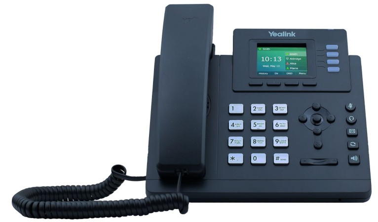 - Yealink SIP-T33G — удобный IP-телефон начального уровня с 4 SIP-аккаунтами, цветным экраном и высокой производительностью, оснащенный 4 программируемыми кнопками. Телефон поддерживает 5-стороннюю аудиоконференцию. Благодаря элегантному дизайну и большому цветному дисплею (320x240) с подсветкой, SIP-T33G обеспечивает комфорт и понятное визуальное представление информации для пользователей. Новый мощный процессор позволяет значительно повысить эффективность работы. Дополнительные опции: гигабитный порт со встроенным PoE, поддержка EHS35 для подключения беспроводной гарнитуры Yealink, регулируемая настольная подставка. Высококачественный и экономичный классический IP-телефон SIP-T33G максимизирует производительность и эффективность бизнес-процессов как в небольших, так и в больших офисных средах. Yealink SIP-T33G отличается от модели Yealink T33P наличием гигабитного порта.