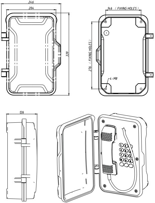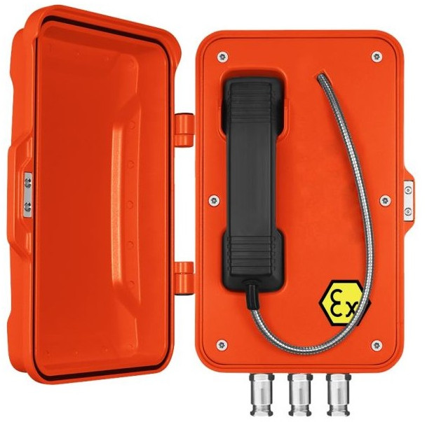- Всепогодный взрывозащищенный промышленный SIP-телефон. Изготовлен из литого под давлением алюминия с антикоррозионным эпоксидным порошковым покрытием и имеет степень защиты от окружающей среды IP67. Рекомендован для использования в метро, горнодобывающей промышленности, тоннелях, заводах, электростанциях, железных дорогах и т. д.