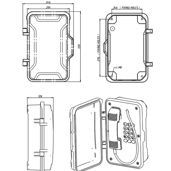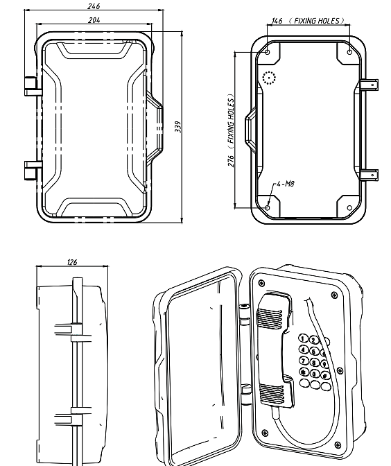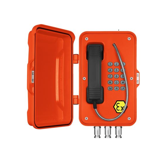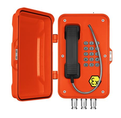 - Всепогодный взрывозащищенный промышленный SIP-телефон. Изготовлен из литого под давлением алюминия с антикоррозионным эпоксидным порошковым покрытием и имеет степень защиты от окружающей среды IP67. Рекомендован для использования в метро, горнодобывающей промышленности, тоннелях, заводах, электростанциях, железных дорогах и т. д.