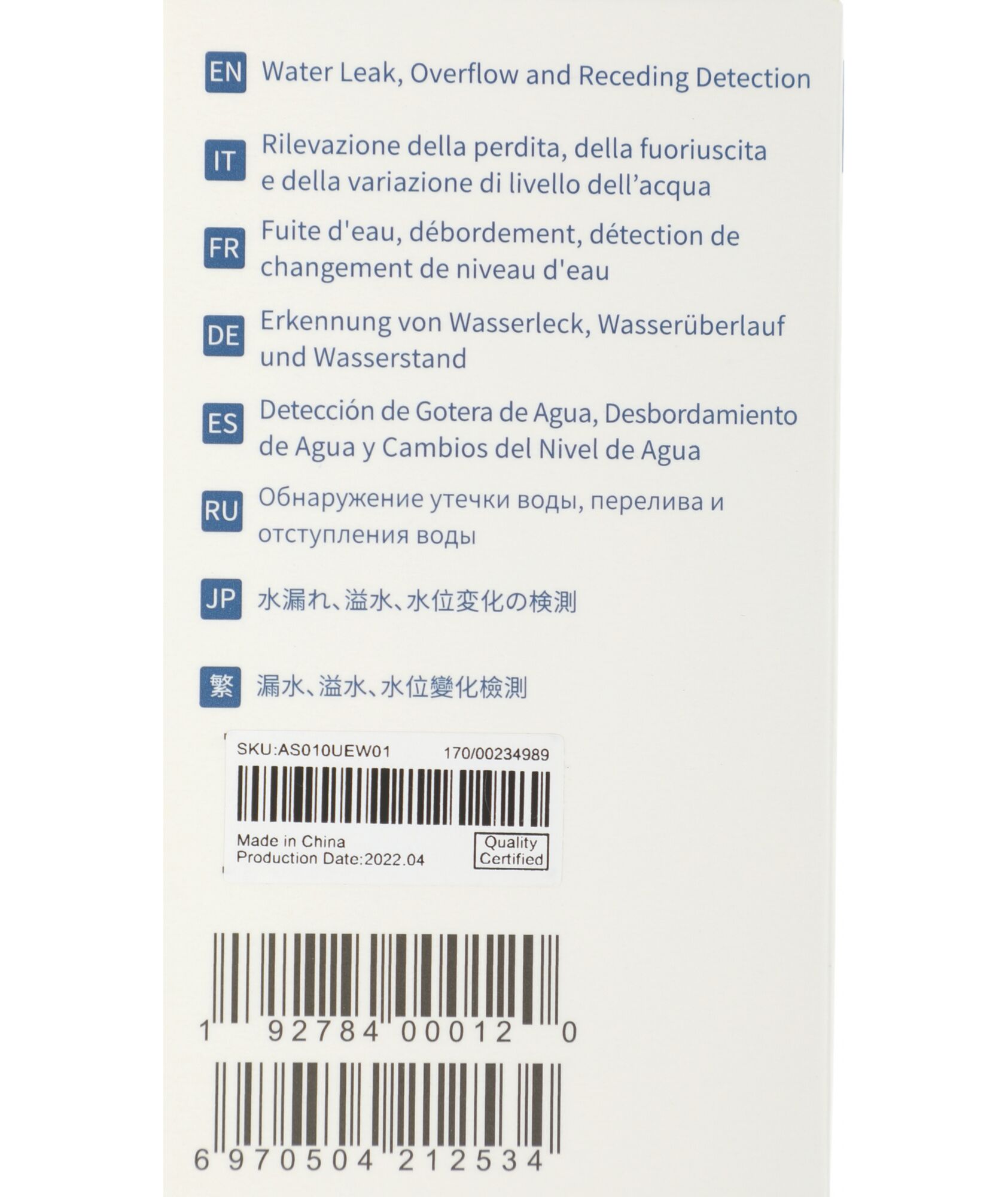 | Количество элементов питания (датчик протечки воды) | 1 |