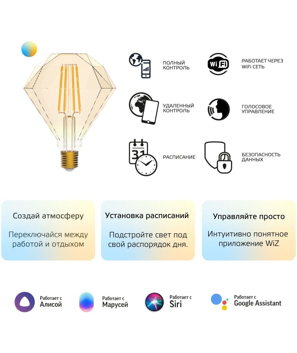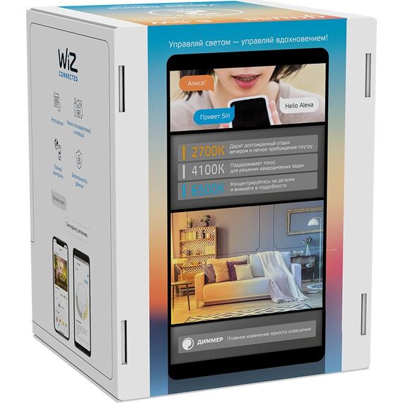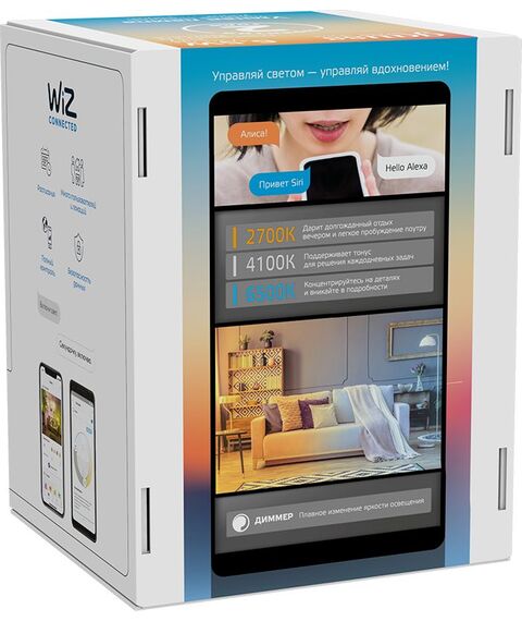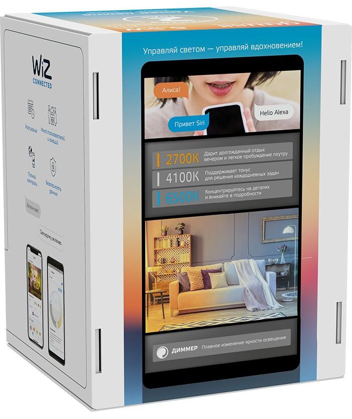 - Требования: мобильное приложение WiZ, Wi-Fi