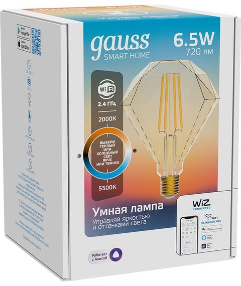 Умная лампа Gauss IoT Smart Home E27 6.5Вт 720lm Wi-Fi [1370112]