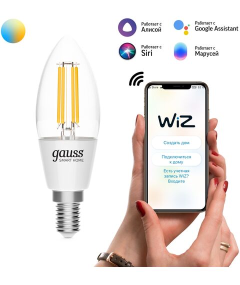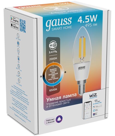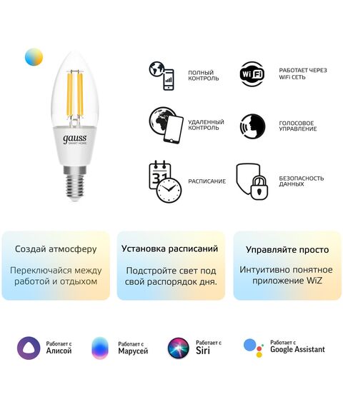 Умная лампа Gauss Smart Home C35 E14 4.5Вт 495lm Wi-Fi [1250112]