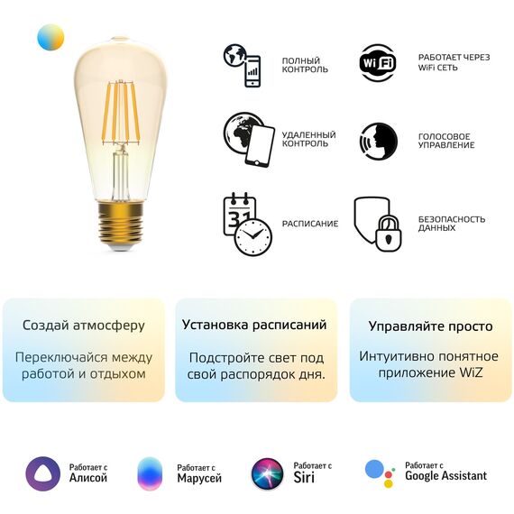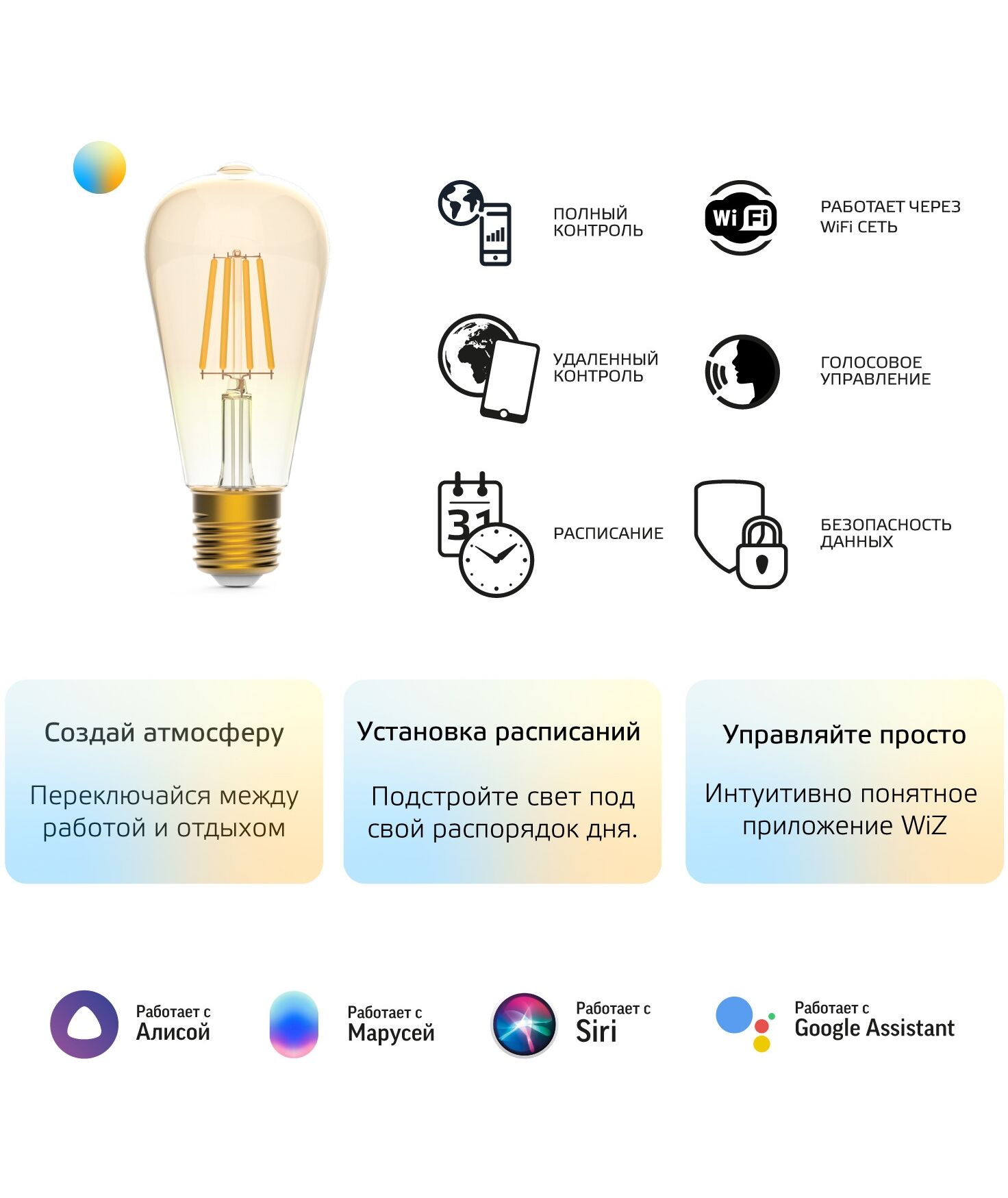 Умная лампа Gauss Smart Home ST64 E27 Wi-Fi [1310112]