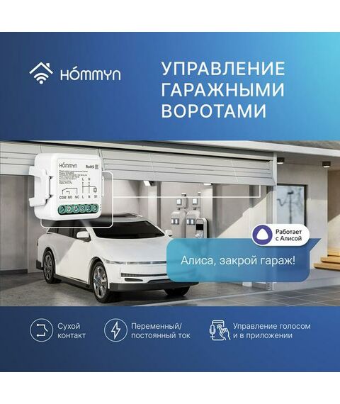 Умное реле Hommyn предназначено для управления различными устройствами, такими как котлы, гаражные ворота, шлагбаумы, а также розетки, светильники, LED-ленты, термостаты и бытовые приборы. Это устройство позволяет сделать «неумные» приборы умными, сохраняя их оригинальный функционал и внешний вид.