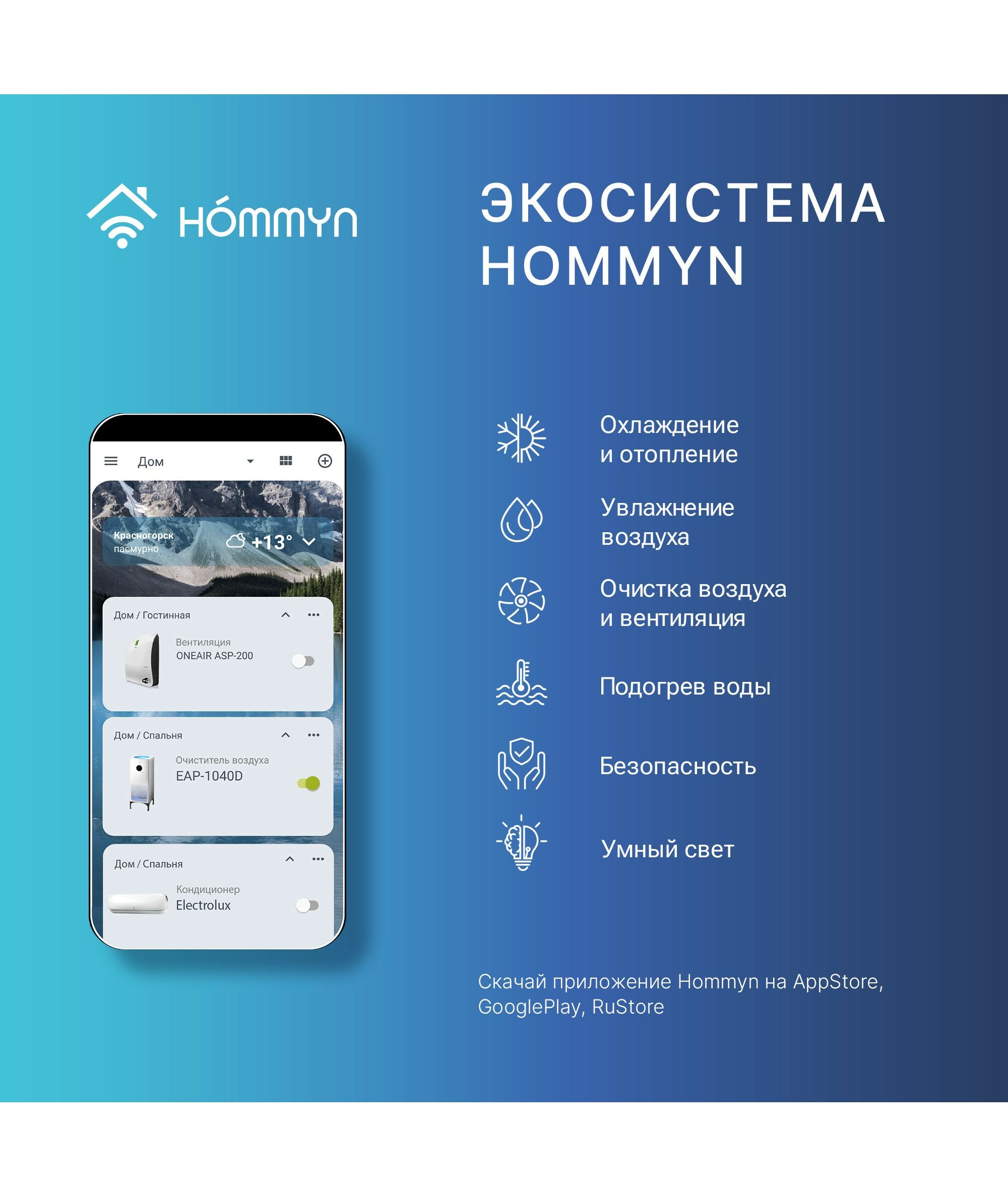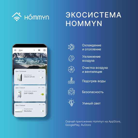 - Совместимость с приложением Hommyn и Умный Дом с Алисой.