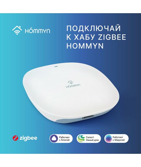 - Для подключения требуется либо Zigbee хаб Hommyn, либо станции Алиса от Яндекс с Zigbee.