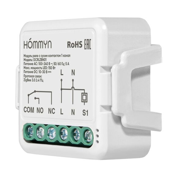 Модуль реле HOMMYN RLZBN01 zigbee 1 канал (с нейтралью)