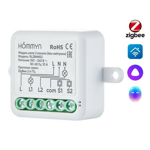 Модуль реле HOMMYN RLZBNN02 zigbee 2 канала (без нейтрали)
