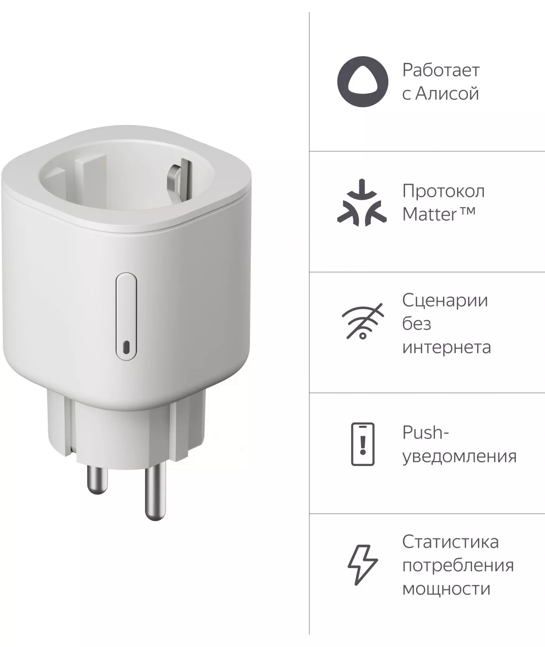 Умная розетка Яндекс Matter EUBT Wi-Fi белый [YNDX-00540WHT]