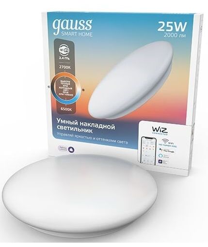 Настенно-потолочные светильники используются там, где требуется качественный равномерный свет. В серии Gauss Smart Home представлены 2 светильника мощностью 25 Вт и 35 Вт с изменяемой цветовой температурой в диапазоне от 2700 К до 6500 К