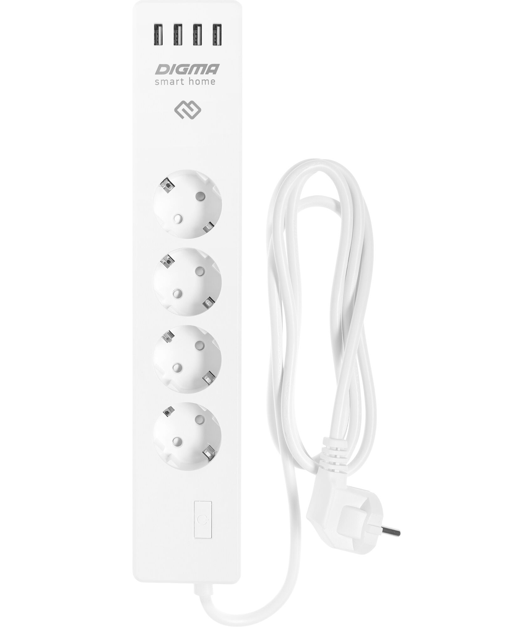 Умный удлинитель DiPlug Strip40 позволяет организовать автоматическое включение любых 4 устройств по сценариям. Все управление производится через приложение в смартфоне из любой точки мира. Так же имеет 4 USB порта. Длина кабеля - 1.8 метра.