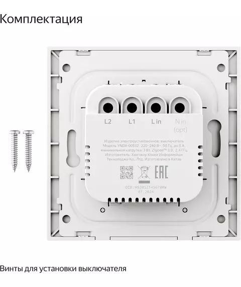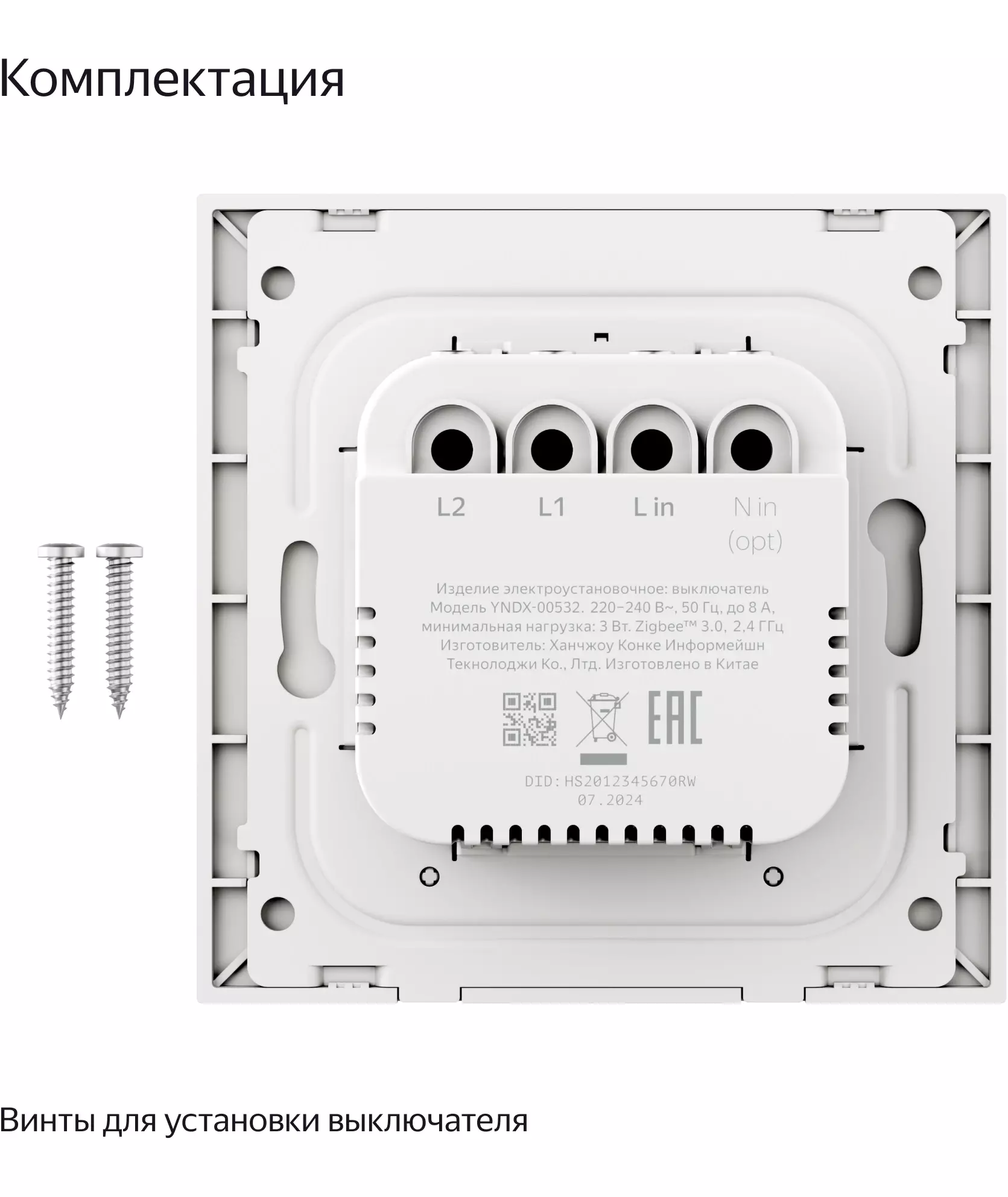 | Комплект поставки | выключатель, комплект винтов, инструкция |
