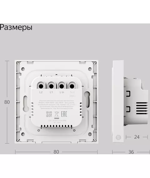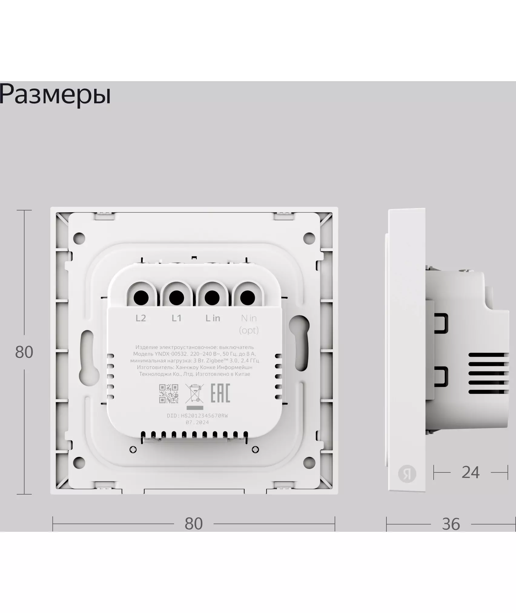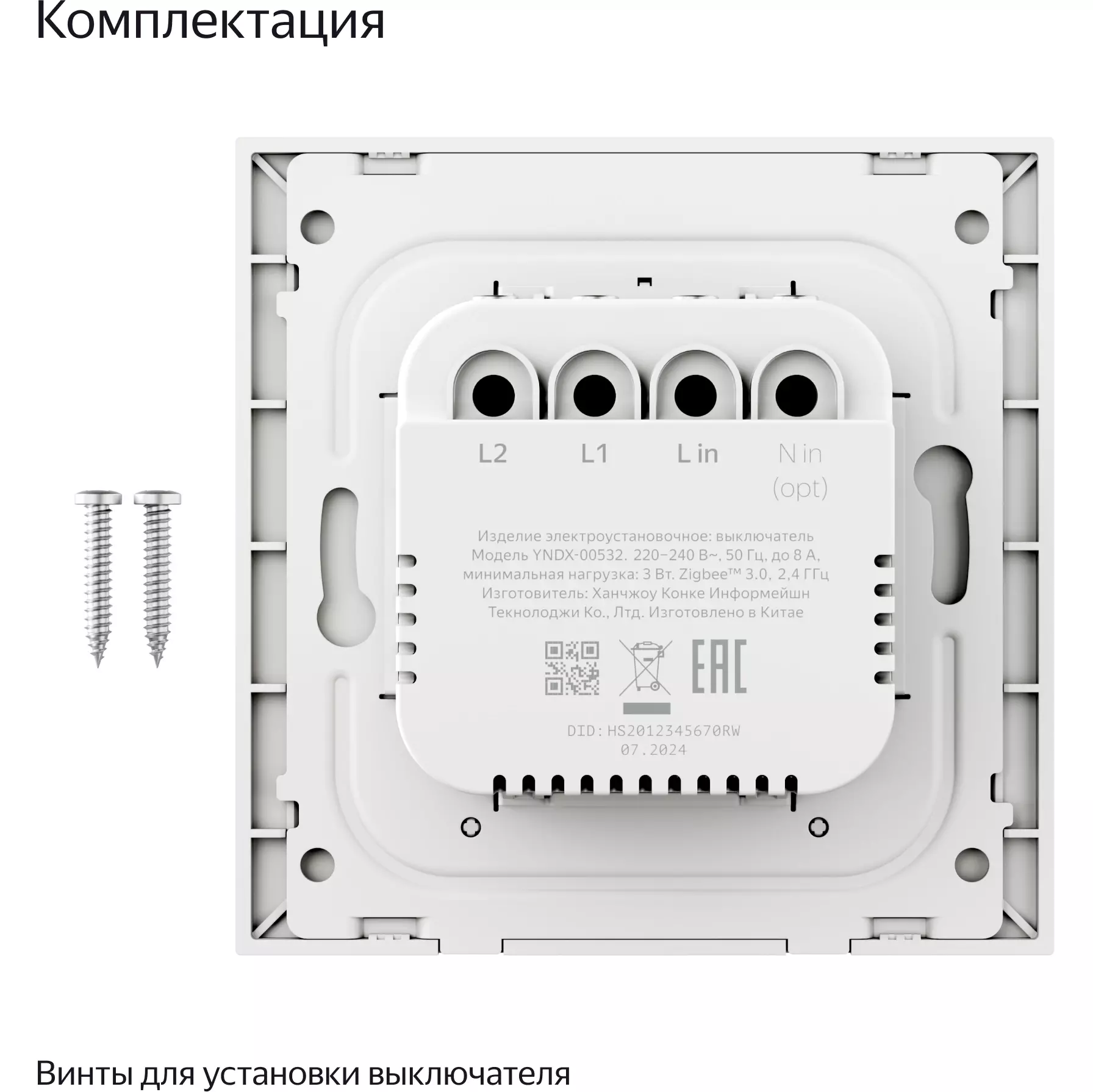 Умный выключатель Яндекс YNDX-00532 2-хкл. универсальный белый