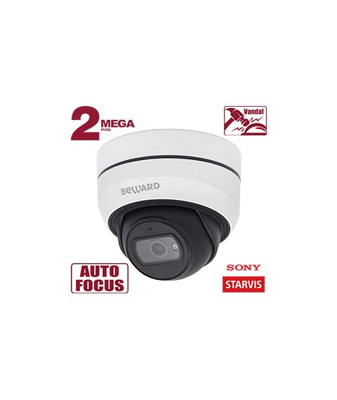 IP-камера Beward SV2010DBZ 2 Мп, 1/2.8" КМОП Sony Starvis, 0.002 лк (день)/0.001 лк (ночь), 2xWDR до 140 дБ, 3 потока H.265/Н.264 HP/MP/BP, MJPEG, 30к/с, 1920x1080, моторизованный объектив 2.8-10 мм, EIS, электромеханический ИК-фильтр, ИК-подсветка (до 35