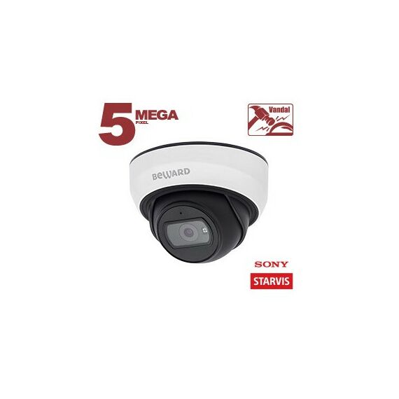 IP-камера Beward SV3210DBS 5 Мп, 1/2.9" КМОП Sony Starvis, 0.006 лк (день)/0.003лк (ночь), 2xWDR до 120 дБ, 3 потока H.265/Н.264 HP/MP/BP, MJPEG, 30к/с, 2560x1920, объектив 2.8 / 3.6 мм (на выбор), цифр. стабилизация изображения, электромеханический ИК-фи