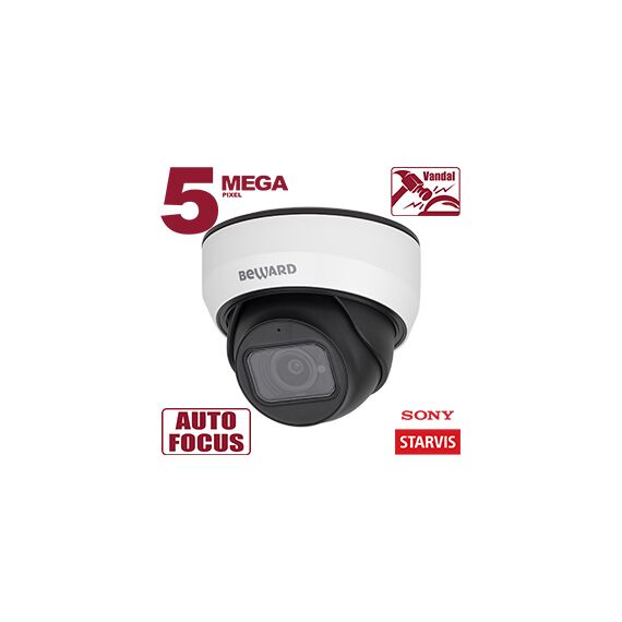 IP-камера Beward SV3212DZ 5 Мп, 1/2.8" КМОП Sony Starvis, 0.006 лк (день)/0.003лк (ночь), 2xWDR до 120 дБ, 3 потока H.265/Н.264 HP/MP/BP, MJPEG, 30к/с, 2592x1944, моторизованный объектив 2.7-13.5, автофокус, электромеханический ИК-фильтр, ИК-подсветка
