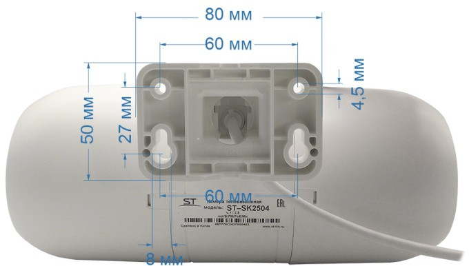 - Комплектность: Камера с кабелем для подключения,крепеж (дюбель-пробка + шуруп), колпачок защитный, ПВХ, для изоляции LAN (RJ-45) разъема от влаги, паспорт, упаковочная коробка