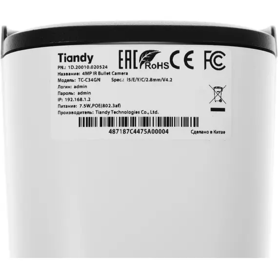 Камера видеонаблюдения IP Tiandy TC-C34GN I5/E/Y/C/2.8mm/V4.2 2.8-2.8мм цв. белый