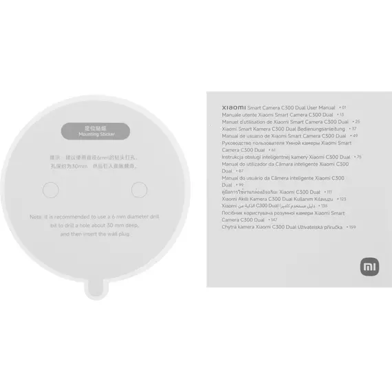| Комплектация | Камера Xiaomi C300 Dual, настенное крепление, адаптер питания, кабель для зарядки, комплект для настенного монтажа (настенный штекер x2, винт x 2), монтажная наклейка, руководство пользователя, уведомление о гарантии |