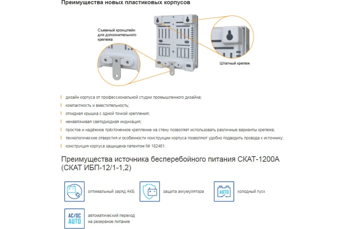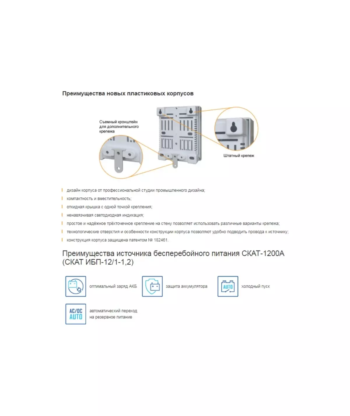 Блок питания Бастион Скат-1200А источник вторичного электропитания 0,7А, 12В (б/АКБ 1,2) пластик