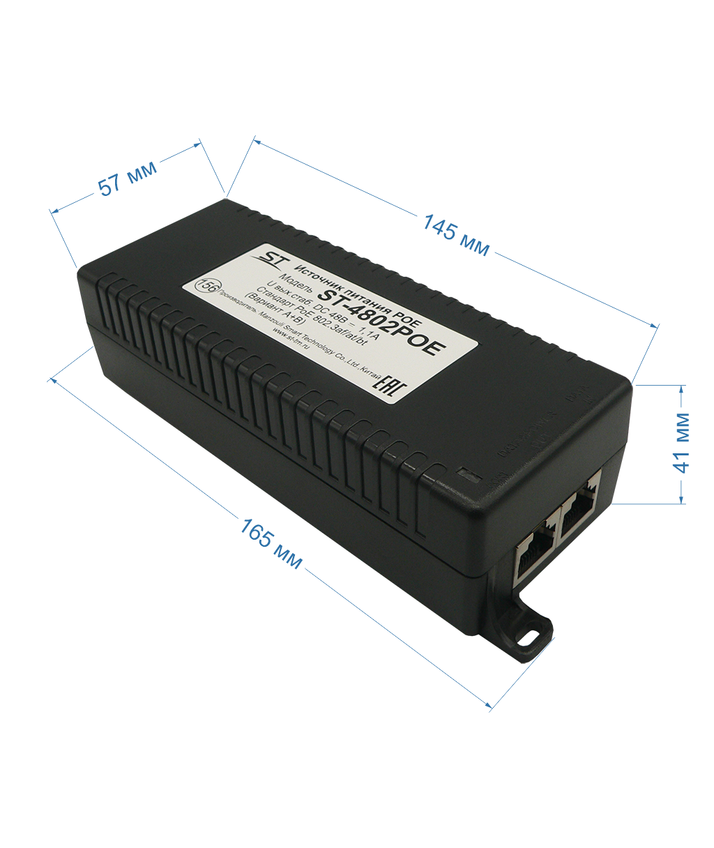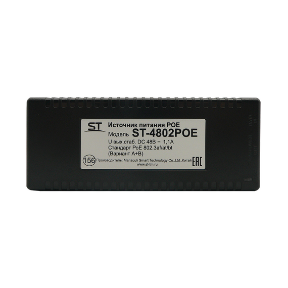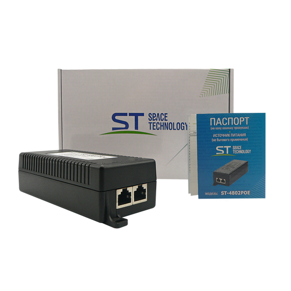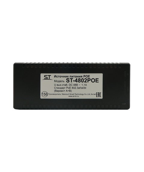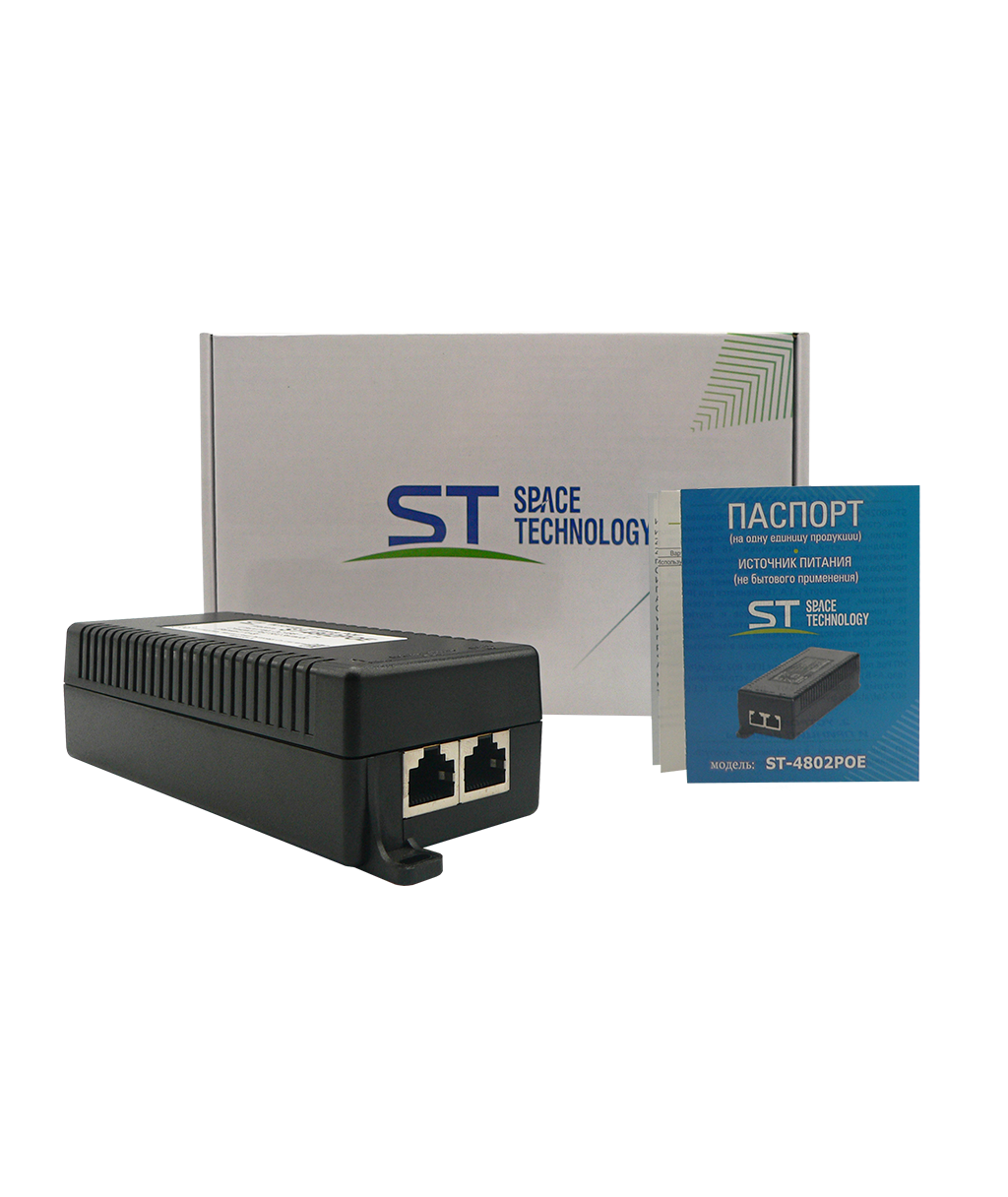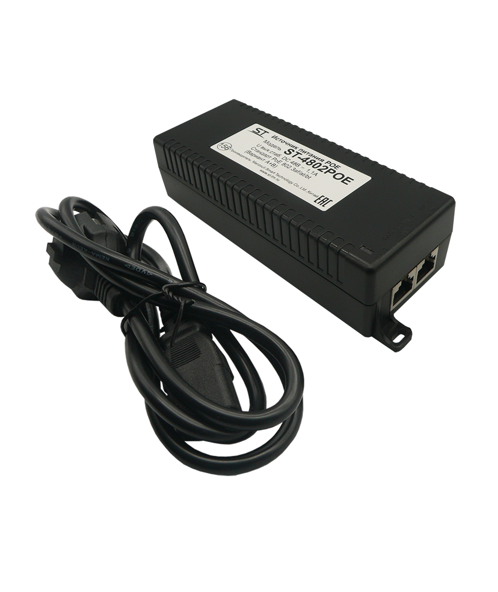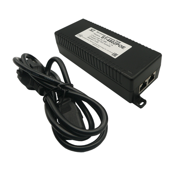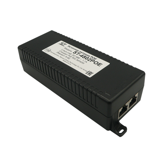 Источник питания POE 1-портовый ST ST-4802POE для обеспечения проводных сетей напряжением 48В, защита от КЗ, защита по току/напряжению от перегрузки - 115% -150% от номинала