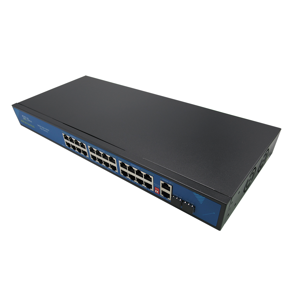 Источник питания ST ST-S242POE (24G/2G/2S/300W/AB) PRO (версия 3) POE вариант A, Switch POE 24-х портовый, 48В, защита от КЗ, AI PoE, VLAN, Грозозащита, PoE порты: 24 х (10/100/1000 Мбит/с), UpLink порты: 2 х (10/100/1000 Мбит/с), SFP порты: 2 х (10/100/1000 Мбит/с)