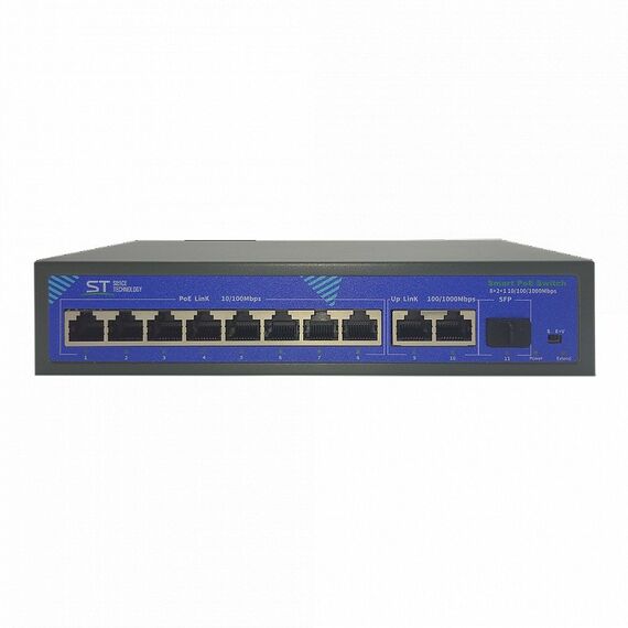 Источник питания ST ST-S87POE(2G/1S/120W/A)PRO, PoE порты: 8 х (10/100 Мбит/с), UpLink порты: 2 х (10/100/1000 Мбит/с), SFP порты: 1 х (1000 Мбит/с)