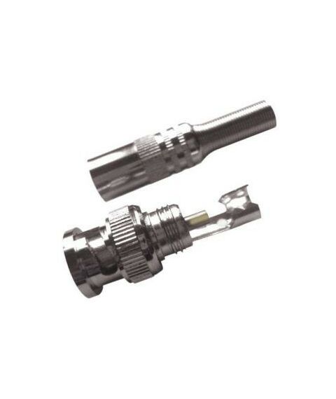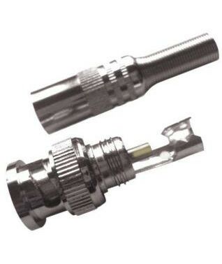 Разъем BNC под винт. Представляет собой металлический коннектор или разъем с байонетным механизмом типа BNC (Bayonet Neill Concelman). Имеет два токопроводящих контакта: центральный и боковой. Для предотвращения излома кабеля, на конце разъема имеется предохранительная пружина. Состоит из двух частей, которые соединяются с помощью резьбового соединения.