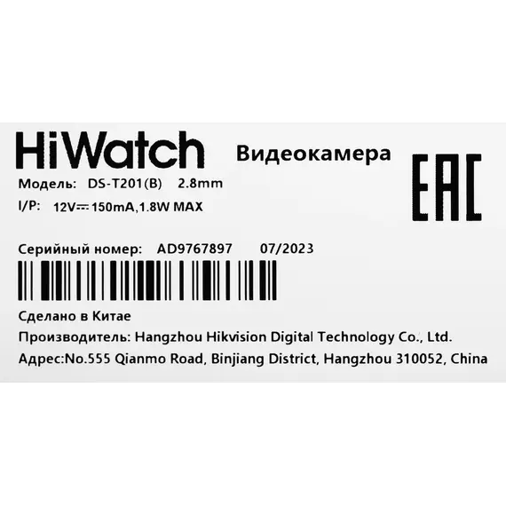 Описание HiWatch DS-T201(B) (2.8 MM)