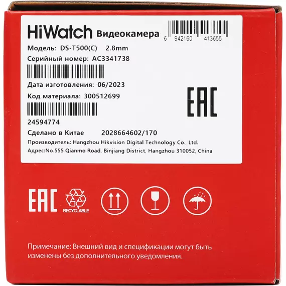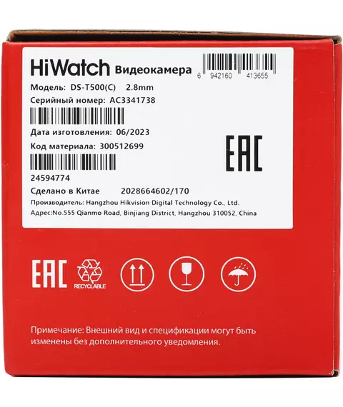 Наличие товара HiWatch DS-T500 (С) (2.8 MM)