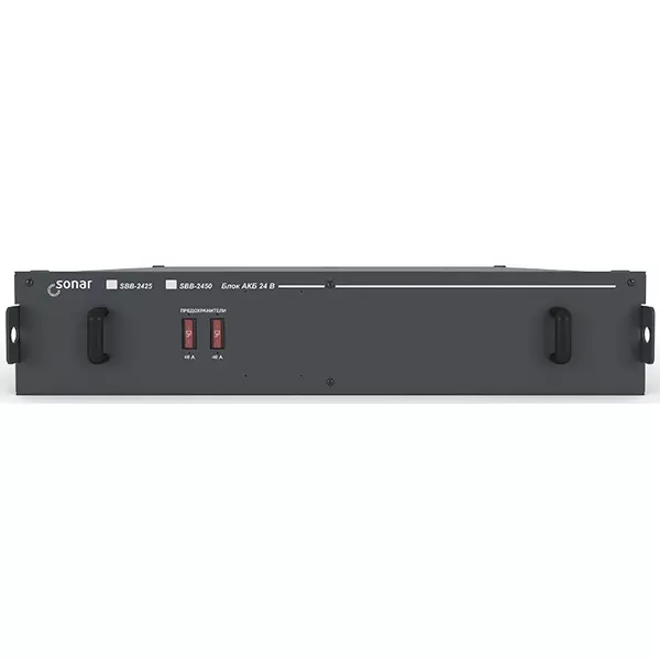 Особенности | Sonar SBB-2425 - Блок АКБ 24В. Заменяемые АКБ 12 В, 5 Ач, количество элементов в корпусе - 10 шт. Блок АКБ предназначен для обеспечения резервным питанием (24 В) основного и вспомогательного оборудования 19'' стойки системы оповещения |