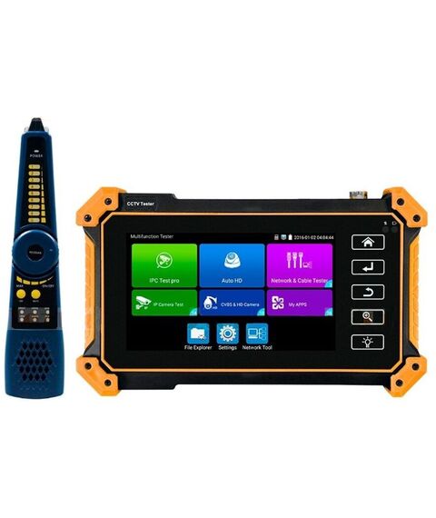 Универсальный 5-дюймовый сенсорный монитор-тестер AHD/CVI/TVI/CVBS и IP-видеосистем. (Базовая модель + детектор кабельной трассы). Разрешение экрана-1920x1080. Операционная система Android.Батарея Li-Pol 7,4V 3350mAh