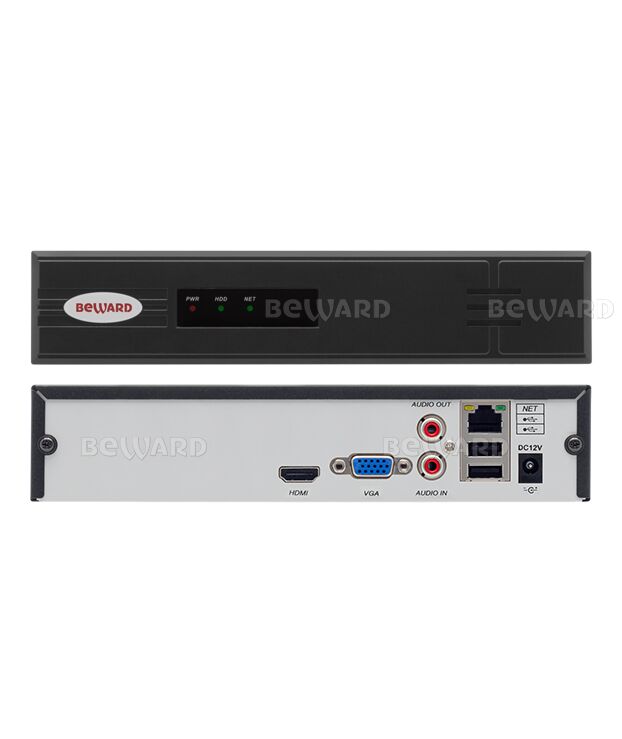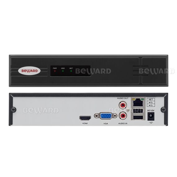 Видеорегистратор Beward BK0108H2 до 8 IP-каналов со звуком, H.265/Н.264, до 80 Мбит/с, 3840x2160 (8 Мп), до 240 к/с, детектор движения, подключение камер по ONVIF, легкий доступ через интернет (P2P сервис), 1хSATA HDD 3.5" (макс. 8 ТБ), мобильный клиент i