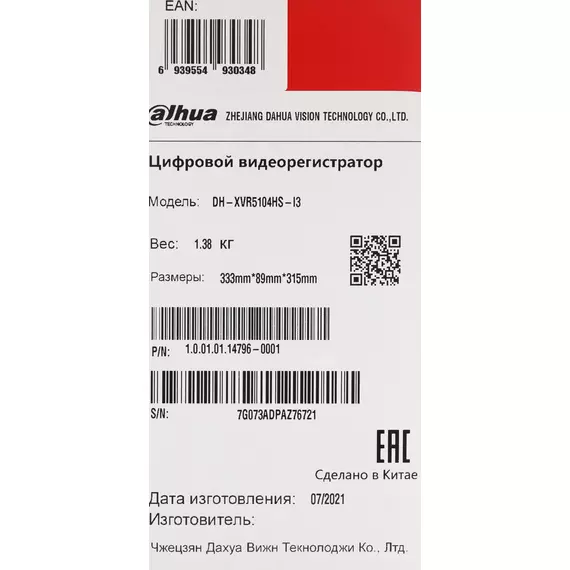 Видеорегистратор Dahua DH-XVR5104HS-I3