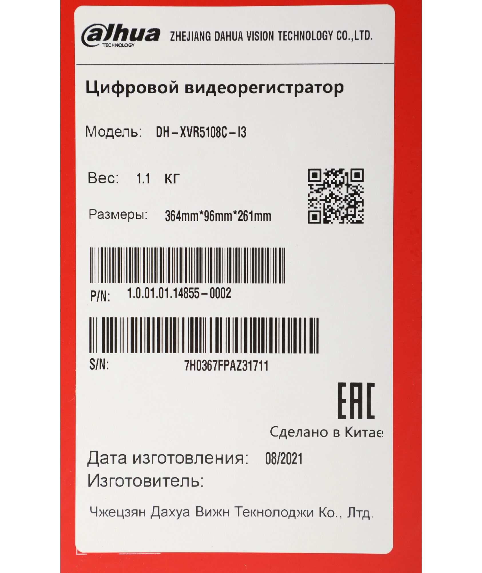 Видеорегистратор Dahua DH-XVR5108C-I3 8-ми канальный мультиформатный