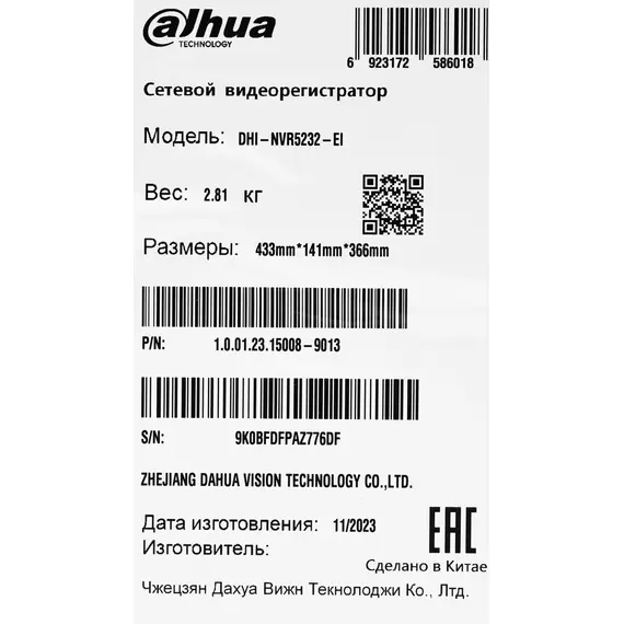 Описание Dahua DHI-NVR5232-EI