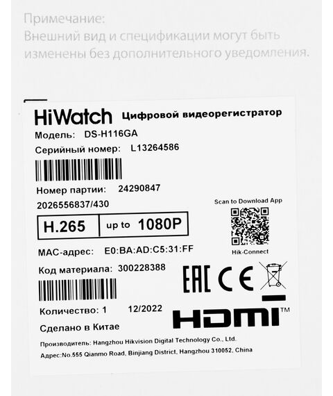 Описание HiWatch DS-H116GA