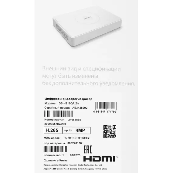 - Форматы сжатия: H.265 Pro/H.265+/ H.265/H.264+/ H.264