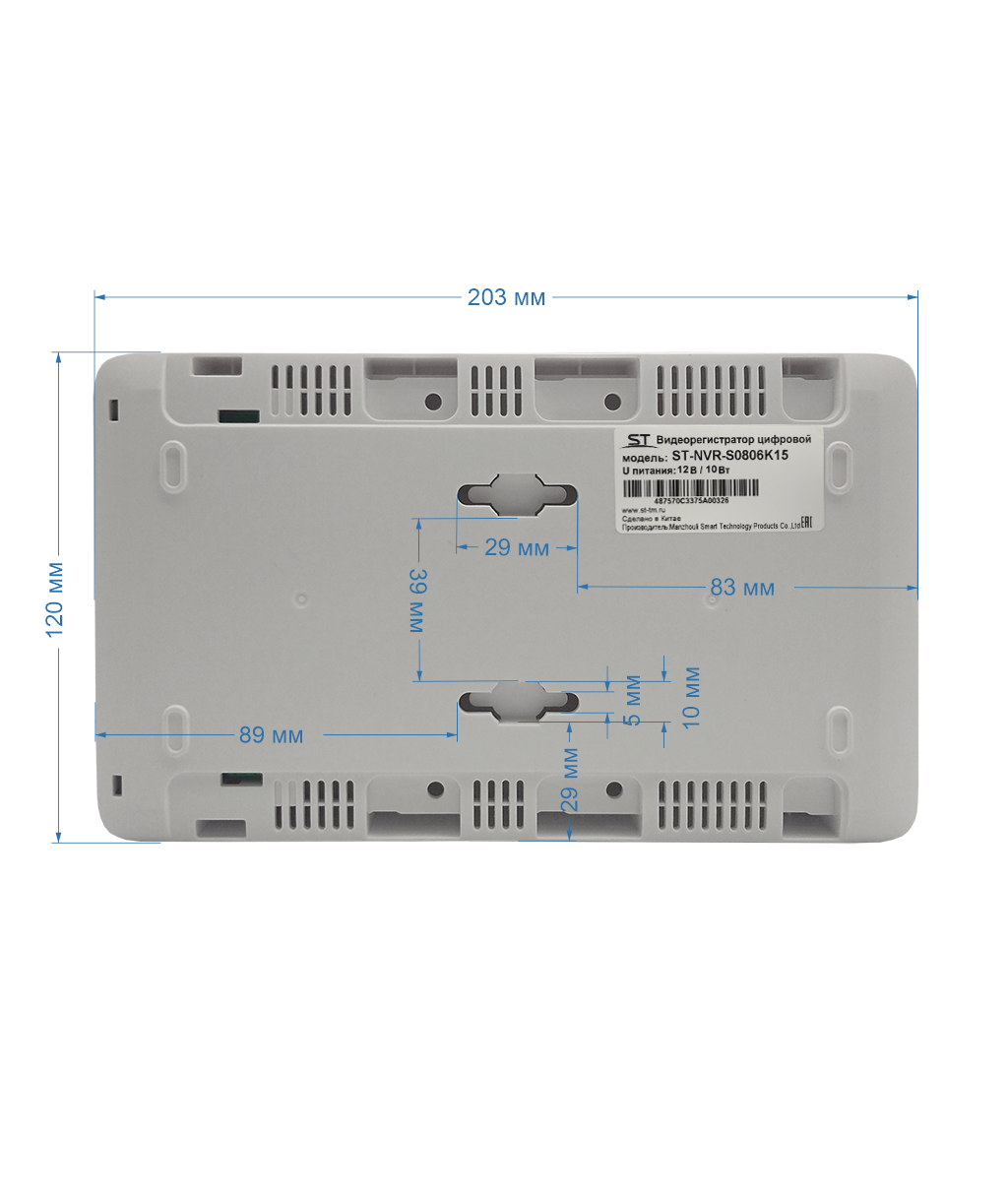 | Напряжение питания/ потребляемая мощность (без HDD) | 12В / 10Вт |